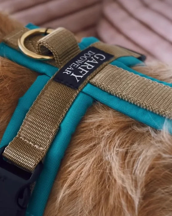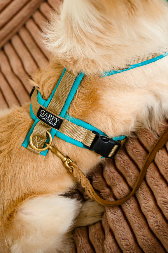 Hundegeschirr Aqua – türkis trifft Sandgold