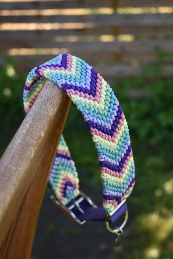 Mit viel Liebe zum Detail wird jedes TreueBand aus hochwertigem Paracord Typ 1 gefertigt und mit einem Adapter aus Biothane oder Fettleder kombiniert. Ob als Zugstopp- oder verstellbares Halsband, es bietet nicht nur einen individuellen Look, sondern auch höchsten Tragekomfort. Der geflochtene Bereich ist etwa 3,5 cm breit und wird aus sechs harmonisch aufeinander abgestimmten Farben zusammengestellt.