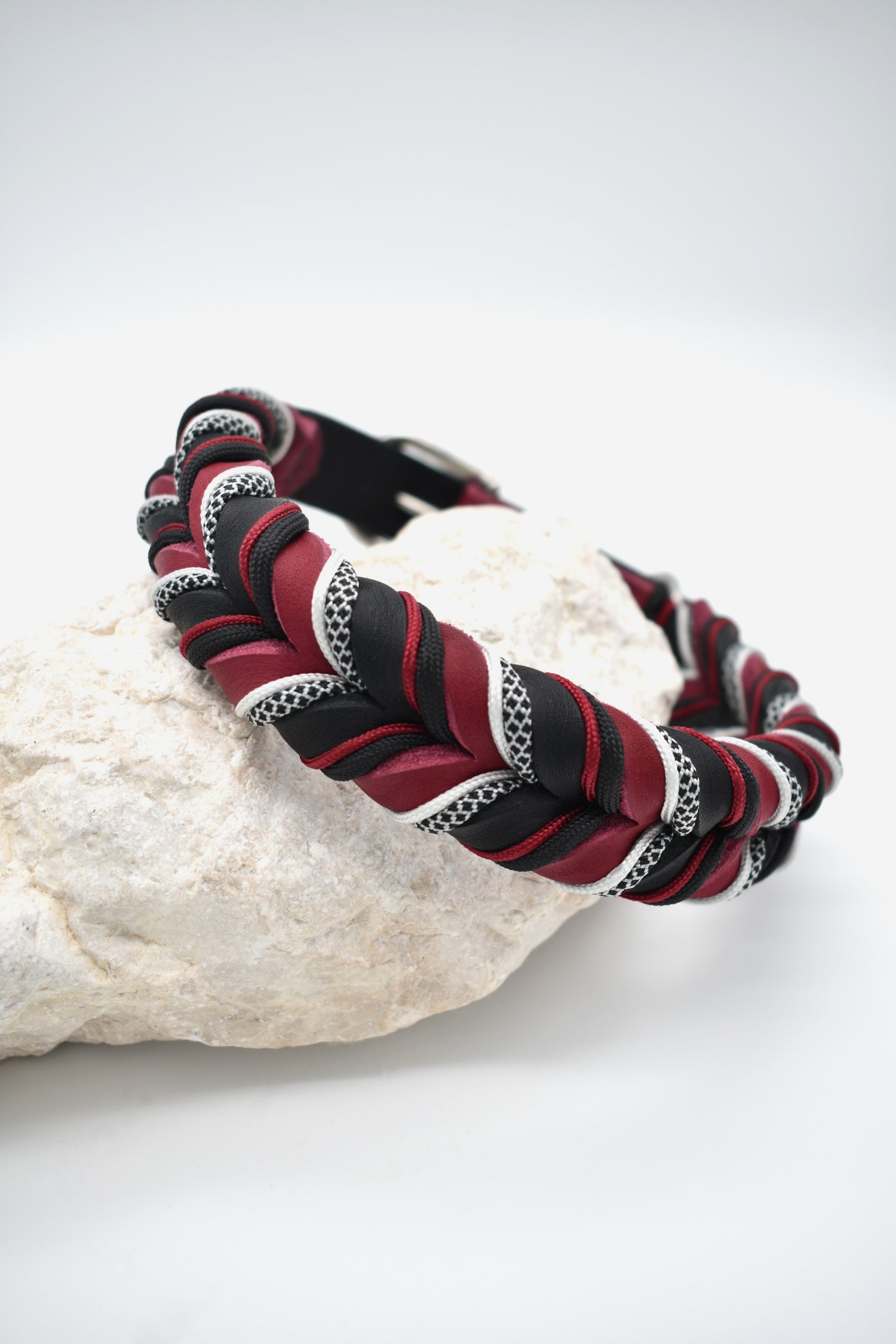 Ob in gedeckten oder lebhaften Farben – das mehrfarbige Pur(e) Plus Halsband aus butterweichem Fettleder ist eine stilvolle Wahl für Euren Hund. Das hochwertige Fettleder schmiegt sich angenehm an den Hundehals, ist äußerst strapazierfähig und ein zeitloser Begleiter. Die verschiedenen Paracordschnüre verleihen dem Halsband das gewisse Etwas und sorgen für einen einzigartigen Look.